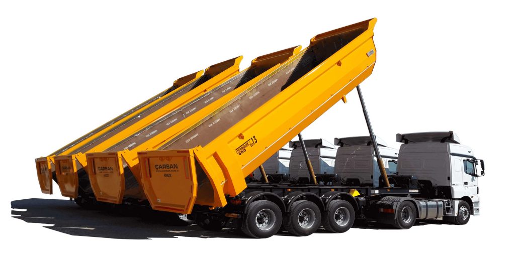 Kullanılacak işin gereğine bağlı olarak; Hardox/Raex, Domex, Welldox veya ST52 malzemeden imal edilmektedir. Arka kapak isteğe göre hidrolik açılır kapanır yapılabilmektedir.